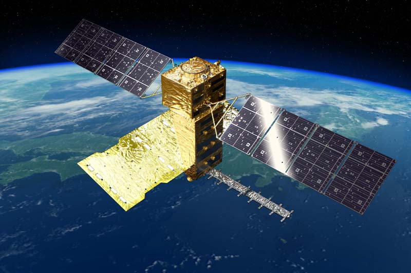 陸域観測衛星だいち2号 レーダーで地上を観測し、災害の把握や環境監視を行う。このレーダーにGaNの素子が用いられている。(出所:JAXA)