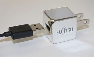 2015年に富士通で試作された「GaN HEMT」を使用したACアダプター 世界最小、最高効率であった。(出所:富士通)
