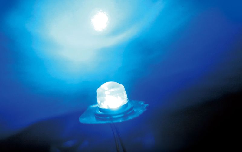 窒化ガリウム(GaN)が用いられる青色発光ダイオード 日本発の青色LEDの登場により、白色LEDが作れるようになり照明の世界に革命をもたらした。(出所:名古屋大学ウエブサイト)