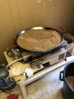 パエリア鍋で小麦を炒る