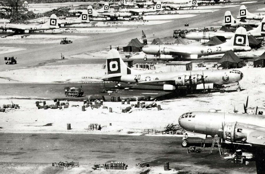 日本空襲を準備するB-29。飛行場を埋め尽くすほど大量のB-29が駐機している。(出所:米空軍博物館)