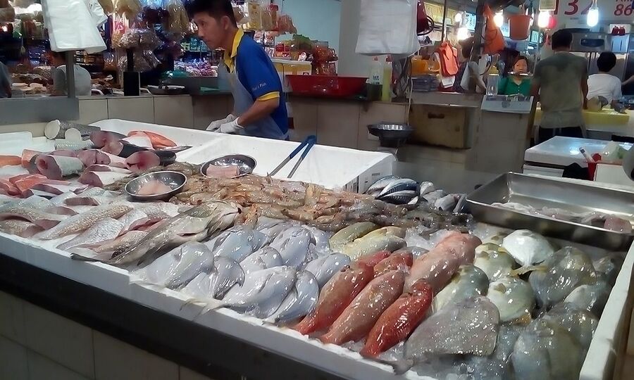 シンガポールの市場「チョンバルマーケット」で売られている魚。