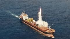 貨物船から発射されたイスラエル軍のLORA(写真:IAI)