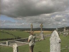 アイルランドのカトリック教会脇にある墓石。アイルランド特有の「ケルト十字」が特徴的