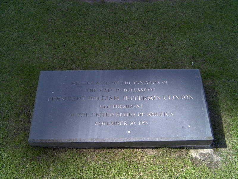 北アイルランドの首都ベルファストにあったビル・クリントン米元大統領の訪問を告げる石版