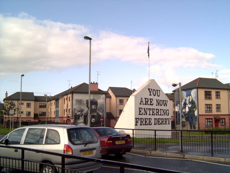北アイルランド、ロンドンデリーの街。ナショナリストとユニオニストが衝突を繰り返してきたことを伝える壁面が見える