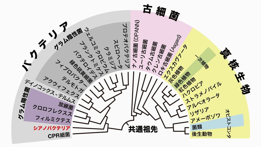 イシクラゲは27億年の生物史が詰まった味だった 地面に生育するイシクラゲ。食用にもなる。一見すると海藻のようだが、実は食の観点から生物進化を捉えると、重要な位置にあることが分かる。 (画像1/3) バクテリア、古細菌、真核生物の3つに分けられるドメインと、第1話で主役となるイシクラゲを含む「シアノバクテリア」(赤字)の位置。 拡大画像表示 (画像2/3) 数珠つなぎ状になっているイシクラゲの細胞。1個の直径は3〜5μm(1μmは1000分の1mm)ほど。緑色の部分は真核生物の緑藻。 (画像3/3) イシクラゲは27億年の生物史が詰まった味だった この写真の記事を読む