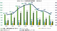 (経産省資源エネルギー庁資料より筆者作成) (註1.2011年から2014年は、上記原油以外に少量の重油等を輸入した) (註2.2013年までS-2原油は「ヴィ―チャジ(勇姿)」原油と呼ばれていた。2014年は過渡期。2015年以降、「サハリン・ブレンド」に統一) (註3.日本は2018年8月度、露ヤマール半島からガスコンデンセート4万9000キロリットルを初輸入した)