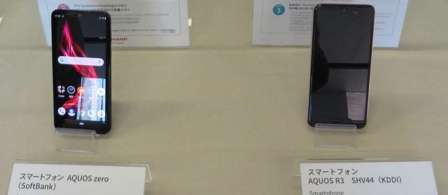 【写真5】有機ELスマホのAQUOS zero(左)と最新の液晶スマホ AQUOS R3(筆者撮影)