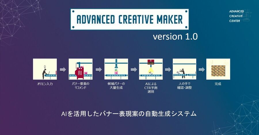 高い効果が期待できるバナー広告をAIが自動生成 (画像1/5) 図1 自動生成したバナー広告のイメージ。自動生成した広告のうち、高い効果が期待できるとAIが判断したものから順に一覧表示する(電通デジタル提供) 拡大画像表示 (画像2/5) 写真1 電通デジタルアドバンストクリエーティブセンター データ&ダイレクトクリエーティブ事業部AIクリエーティブ開発グループマネージャー クリエーティブディレクターの和泉興氏 (画像3/5) 図2 ADVANCED CREATIVE MAKERによるバナー広告自動生成の大まかな流れ(電通デジタル提供) 拡大画像表示 (画像4/5) 写真2 電通デジタル広告事業ストラテジー部門ソリューション戦略部データサイエンスグループ シニアアナリストの今井優作氏 (画像5/5) 高い効果が期待できるバナー広告をAIが自動生成 この写真の記事を読む