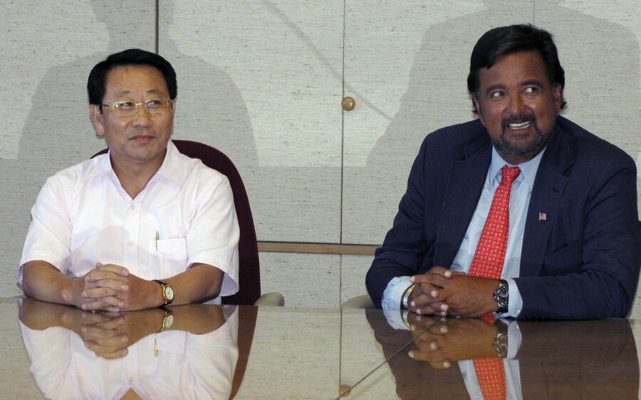 ミサイル発射直後の米朝実務者協議、北は何を得るか 米朝実務者協議で北朝鮮側の代表を務める金明吉・前駐ベトナム大使(左)。写真は2009年8月、アメリカでニューメキシコ州のビル・リチャードソン知事(当時)と会談した際のもの(写真:AP/アフロ) (画像1/2) 『ファーウェイと米中5G戦争』(近藤大介著、講談社+α新書) (画像2/2) ミサイル発射直後の米朝実務者協議、北は何を得るか この写真の記事を読む