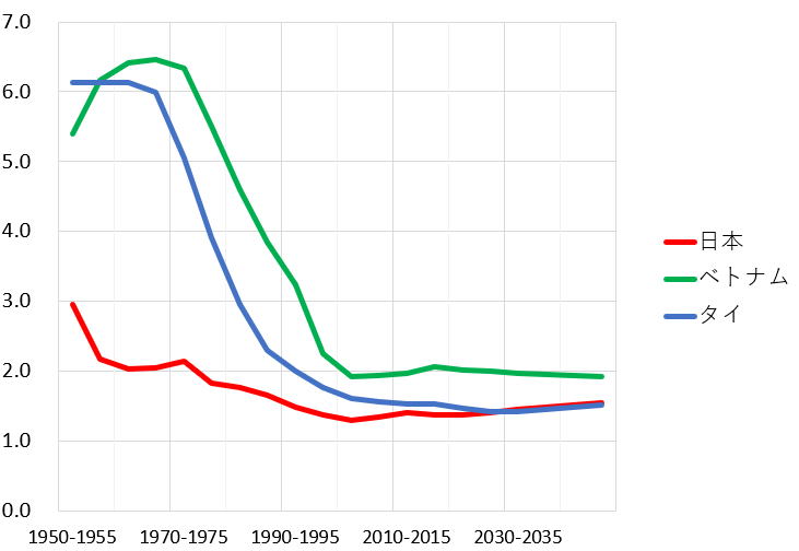 図1 ベトナムと日本のTRF(合計特殊出生率)