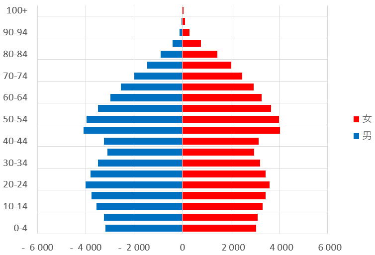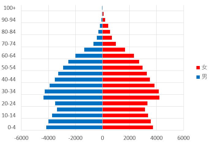 図2 2020年のベトナム(縦軸5歳刻み、横軸の単位は1000人)