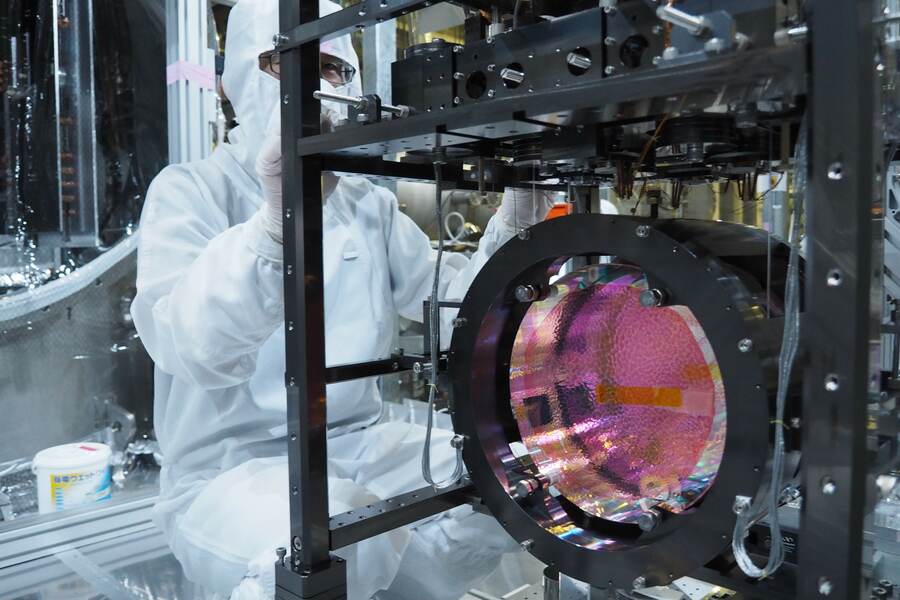 重力波に耳を澄ます世界最大のKAGRAサファイア鏡 2018年8月、KAGRAクライオスタット内へのサファイア鏡設置作業の様子。(提供:東京大学宇宙線研究所) (画像1/5) KAGRA報道公開で、KAGRA前身の重力波望遠鏡CLIOで使われたサファイア鏡のプロトタイプを手に。材質はKAGRAの鏡と同じ人工サファイアでずっしり重い。透明なので、宝石のサファイアという感じはしない。 (画像2/5) サファイア鏡の高さをKAGRAのレーザーに合わせる高さ調整をしているところ。赤いのは測量用のレーザー光で水平に照射。写真右側に水準器。(提供:東京大学宇宙線研究所) (画像3/5) 中性子星合体とそれにより放出される物質によってキロノバが起こる様子の想像図。(提供:国立天文台) (画像4/5) 初期宇宙からの重力波を捕まることができれば、宇宙誕生に関する謎を解くカギが得られるかもしれない。(提供:国立天文台) (画像5/5) 重力波に耳を澄ます世界最大のKAGRAサファイア鏡 この写真の記事を読む
