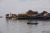 ペナン島水上の家で扇風機に当たる猫とおばあさん
