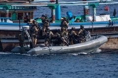タンカーがテロ標的に、警戒に行かないのは日本だけ 不審船を停船させるCTF-150のフランス軍艦(写真:CMF) (画像1/5) アラビア半島の周辺海域と6隻のタンカーが攻撃された場所。ペルシア湾とオマーン湾をつなぐ海峡がホルムズ海峡 拡大画像表示 (画像2/5) 不審船に乗り込むCTF-150の臨検隊(写真:CMF) (画像3/5) CTF-151の海上自衛隊とスペイン海軍艦艇(写真:CMF) (画像4/5) CTF-152のペルシア湾岸での作戦にはアメリカ沿岸警備隊も参加している(写真:CMF) (画像5/5) タンカーがテロ標的に、警戒に行かないのは日本だけ この写真の記事を読む
