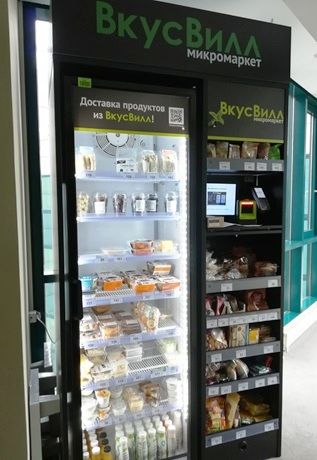 ズベルバンク本店のオフィスに設置されたオーガニックフードの販売機。もちろん決済はキャッシュレスである