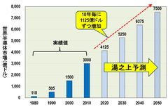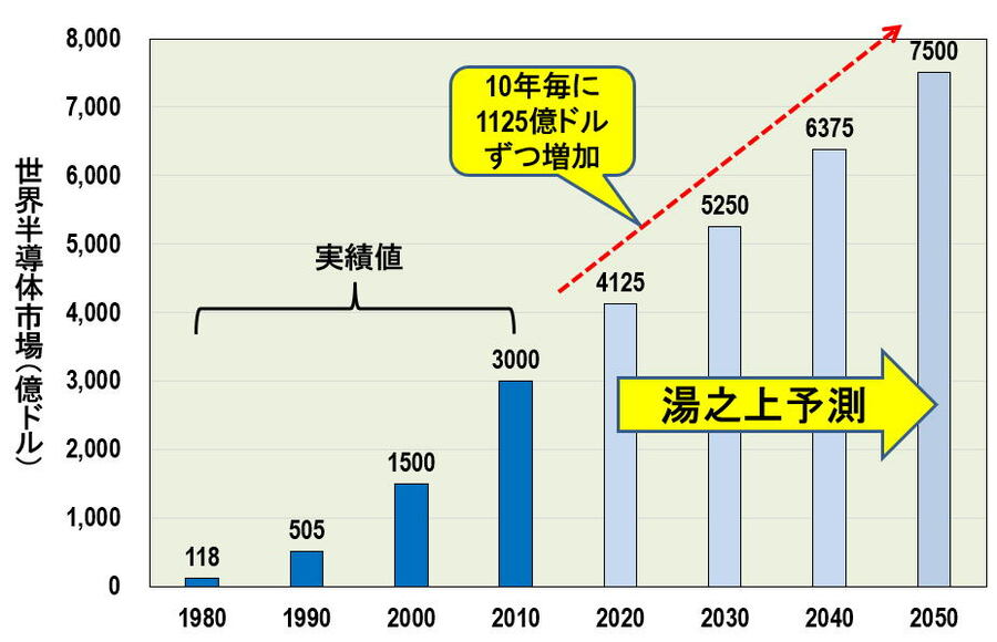 人類を支える半導体、市場はどこまで大きくなるのか (画像1/6) 図1 2050年までの世界半導体市場の成長予測 (出所:実績値はガートナーおよびWSTSのデータ) (画像2/6) 図2 2010年から2050年にかけての世界人口動態 (画像3/6) 図3 世界半導体市場、出荷個数、平均販売価格の推移 (出所:ガートナーおよびWSTSのデータをもとに筆者作成) (画像4/6) 図4 2018年までの世界半導体市場と出荷個数の推移 (出所:WSTSのデータをもとに筆者作成) (画像5/6) 図5 世界半導体市場の再予測 (画像6/6) 人類を支える半導体、市場はどこまで大きくなるのか この写真の記事を読む