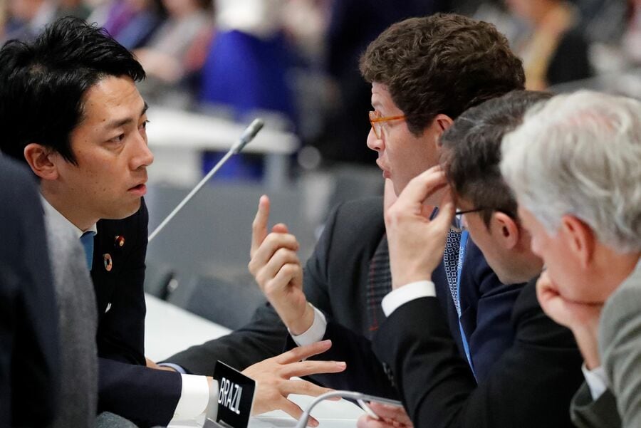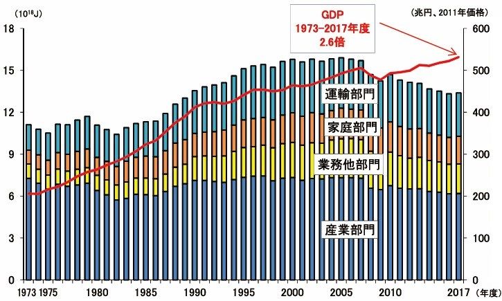 日本は石炭火力で多くの人々の命を救える スペインで開催されたCOP25でブラジルのリカルド・サレス環境相と話をする小泉進次郎環境相(2019年12月15日、写真:ロイター/アフロ) (画像1/2) 最終エネルギー消費量と実質GDPの推移(経済産業省調べ) (画像2/2) 日本は石炭火力で多くの人々の命を救える この写真の記事を読む
