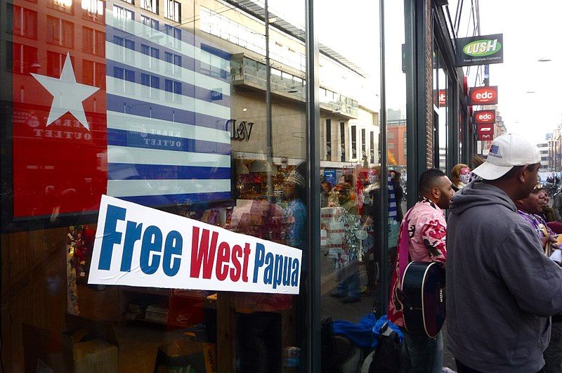 反逆罪に問われたパプア人、ほぼ全裸で出廷したワケ 2008年、モーニングスター旗(明けの明星旗)を掲げてオランダで展開された西パプア独立運動の様子(ウィキペディアより) (画像1/2) 伝統的民族衣装でもある「コテカ」(ペニスケース)を着けたパプア人の男性(参考写真) (画像2/2) 反逆罪に問われたパプア人、ほぼ全裸で出廷したワケ この写真の記事を読む