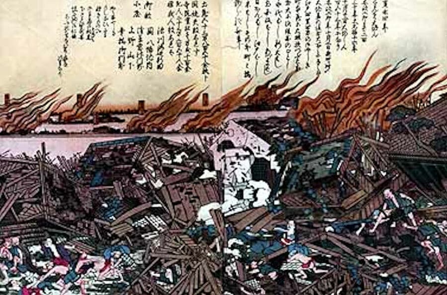本文で登場する安政の大地震(1854~1855年)から30数年後の1891年(明治24年)に発生した美濃地震で被災した愛知県・一宮の状況。(*本文の内容とは直接関係ありません。写真:MeijiShowa/アフロ)