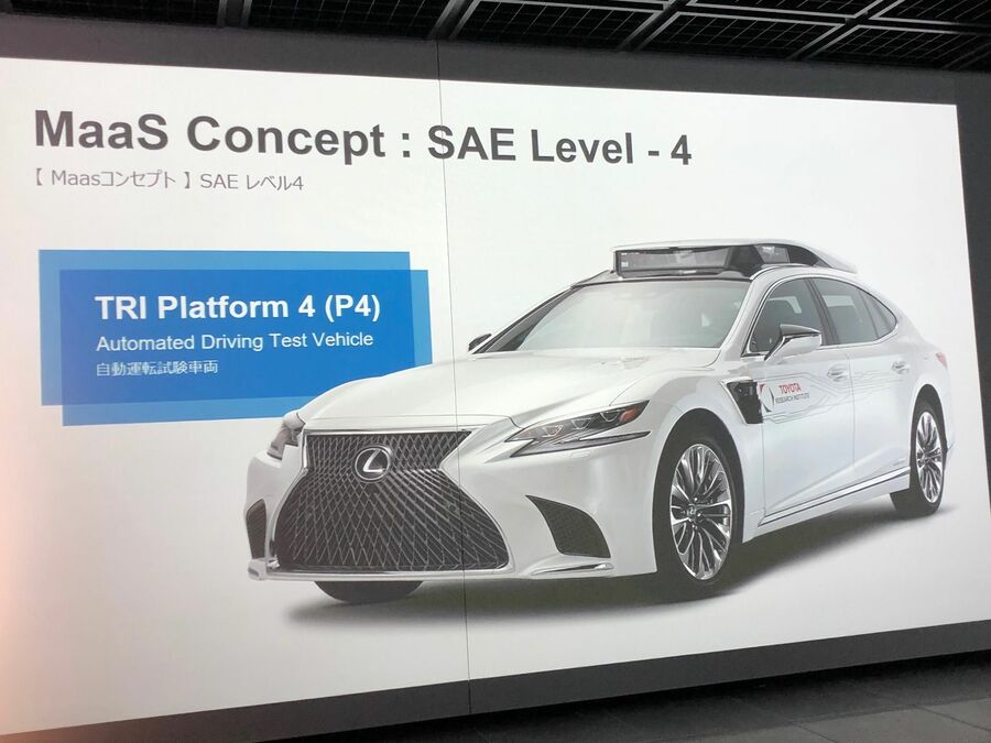 トヨタが東京臨海部で実証を行うレベル4相当の実験車両。トヨタの説明会資料より(筆者撮影)