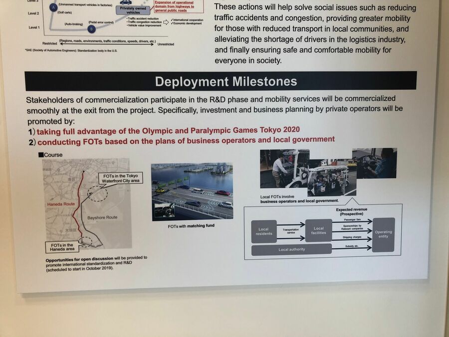 国の「戦略的イノベーション創造プログラム」(SIP)による東京臨海部での自動運転実証の英語版説明パネル