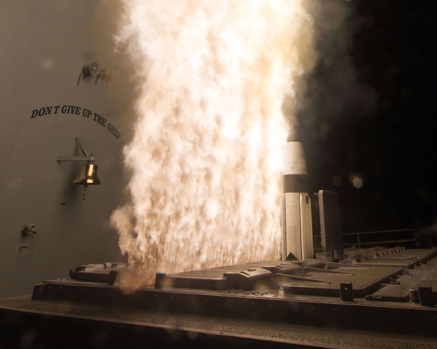 米海軍のイージス巡洋艦「レイク・エリー」から発射されるSM-3(写真:米海軍)