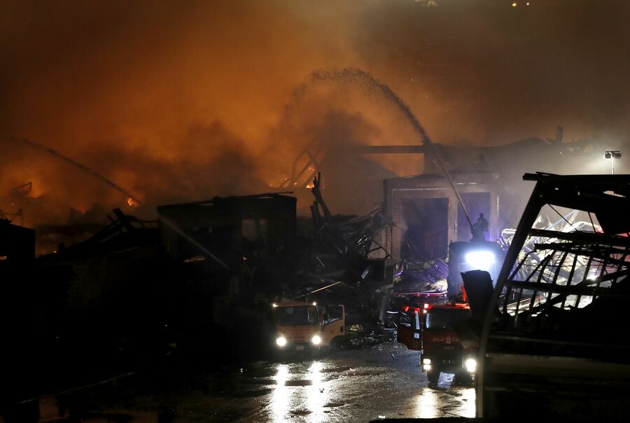 再び大規模火災が発生したレバノンの首都ベイルート(写真:AP/アフロ)