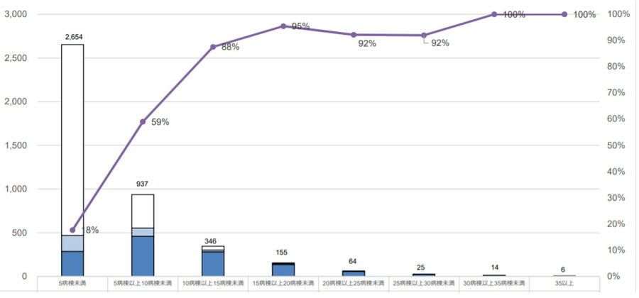 図2 病院の規模別のコロナ患者受け入れ数(出所:厚生労働省)