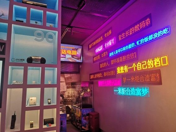 華強北にある博物館の一角。華強北の精神を表す言葉が掲示されている