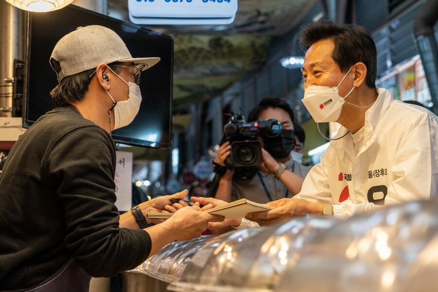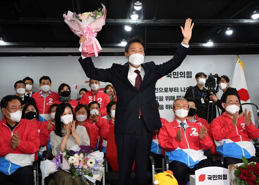 ソウル・釜山市長選の野党圧勝に見る文政権の断末魔 ソウル市長選に勝利した野党の呉世勲氏(写真:代表撮影/ロイター/アフロ) (画像1/2) 終始選挙戦を有利に進めた呉世勲氏(写真:Penta Press/アフロ) (画像2/2) ソウル・釜山市長選の野党圧勝に見る文政権の断末魔 この写真の記事を読む