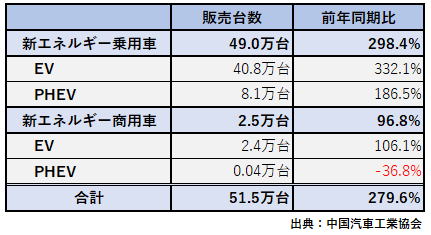 中国における新エネルギー車販売台数順位(2021年1~3月、「前年同期比」は増分を示す)