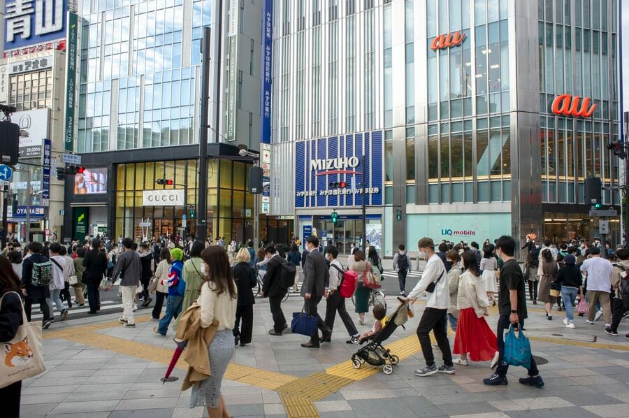 3回目の緊急事態宣言が発令された東京。相変わらず人通りが多い新宿の様子(2021年4月25日、写真:Duits/アフロ)