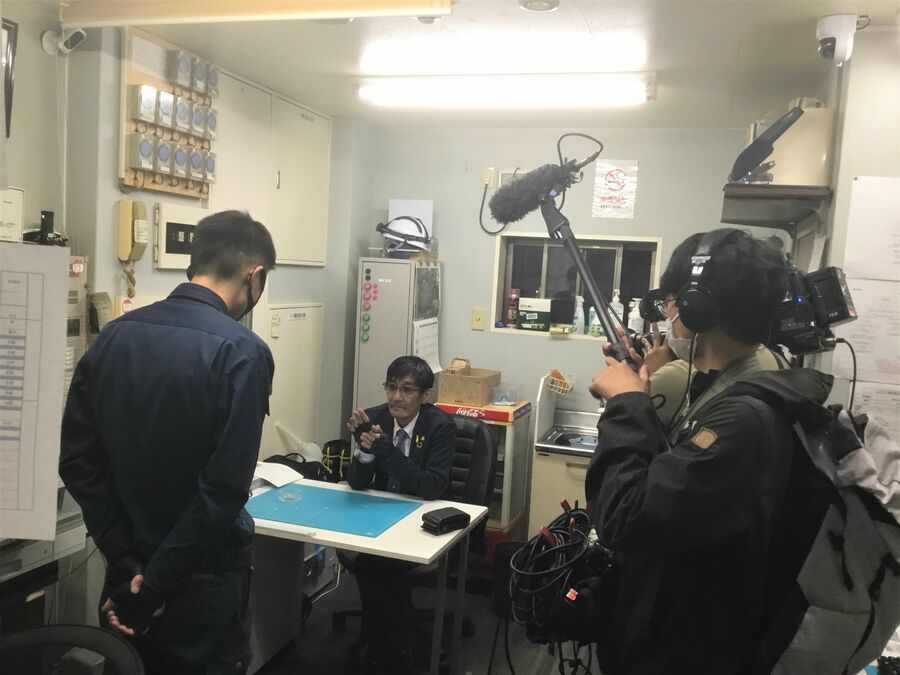 ドキュメンタリー番組にてインタビューを受ける中溝社長(右)