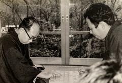 ときに盤外衝突も?36歳で急逝した山田道美九段の勝負への執念 1965年(昭和40)の名人戦で大山康晴名人(当時42)に挑戦した山田道美八段(同31)が、第1局の対局場の東京・広尾「羽沢ガーデン」の庭園で想を練っているところ。写真提供/田丸 昇(以下同) (画像1/6) 山田が研究室で棋譜を並べている光景。棋譜を戦型ごとのファイルに分け、効率的に研究していた。 (画像2/6) 王将戦での対局光景。 (画像3/6) 棋聖戦第4局の対局光景(左は山田)。学生服を着た中央の記録係は、私こと田丸二段(同17)。 (画像4/6) (画像5/6) 私が10年ほど前に刊行した山田の評伝『熱血の棋士 山田道美伝』(日本将棋連盟)。 (画像6/6) ときに盤外衝突も?36歳で急逝した山田道美九段の勝負への執念 この写真の記事を読む