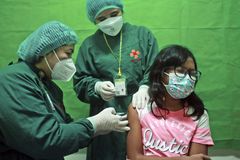 シノバック製ワクチンの治験担当者の感染死が報じられた7月8日、北スマトラ大学病院では12歳以上の子どもにシノバック社製のワクチン接種キャンペーンが展開されていた(写真:AP/アフロ)