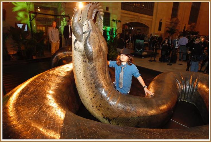 米・スミソニアン博物館が、ニューヨーク市マンハッタン区のグランド・セントラル駅で行ったティタノボア模型の展示写真。(Credit:Mark Von Holden/Smithsonian Channel October 23, 2012)