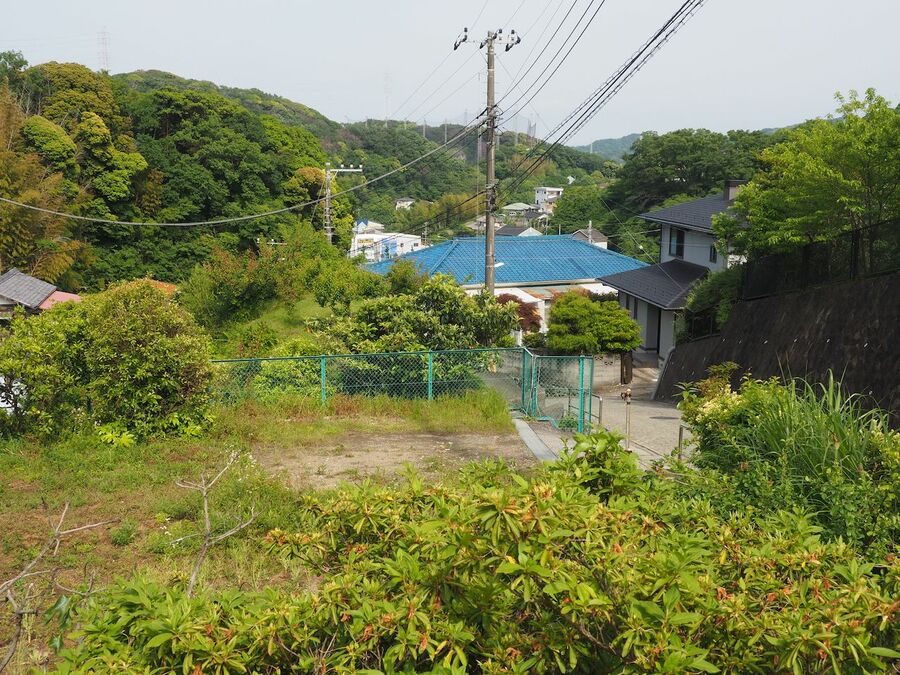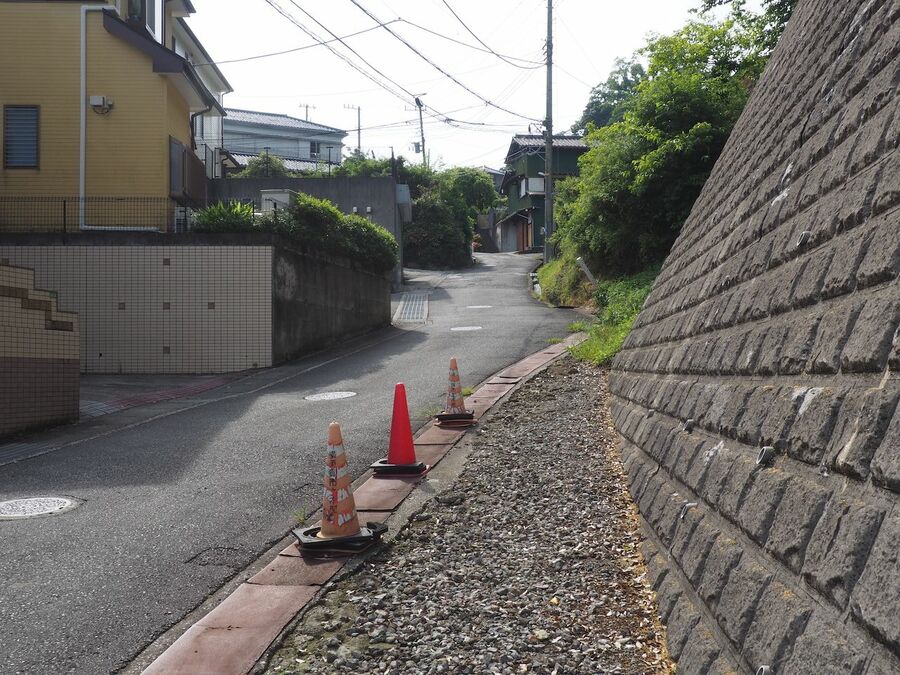 同じく西木戸推定地付近。城の裏手に通じる山道に対し、画面右手の高台から金田頼次・和田義盛らが矢を射かけて防戦したのだろう。