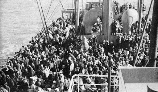 朝鮮戦争当時、興南から撤退する米軍LST船に乗り込んだ避難民(NK知識人連帯提供)