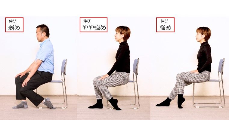 【写真4】左から弱め~強め。気持ちよく伸びる場所につま先を置(撮影:URARA)く