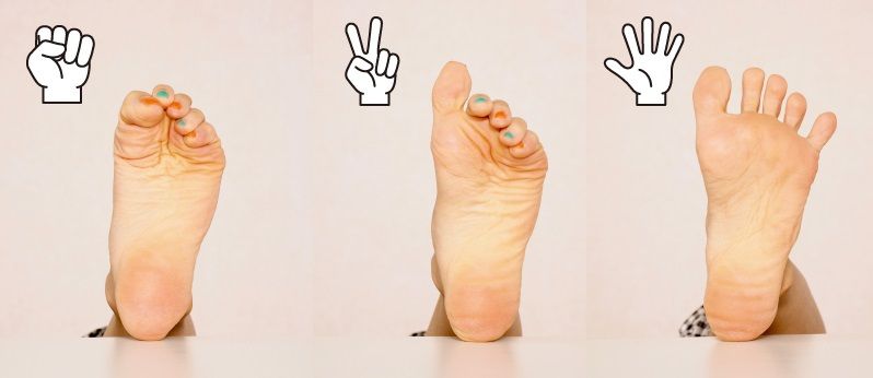 【写真10】足指チョキの練習。慣れたら手で押さえるサポート無しでトライ(撮影:URARA)