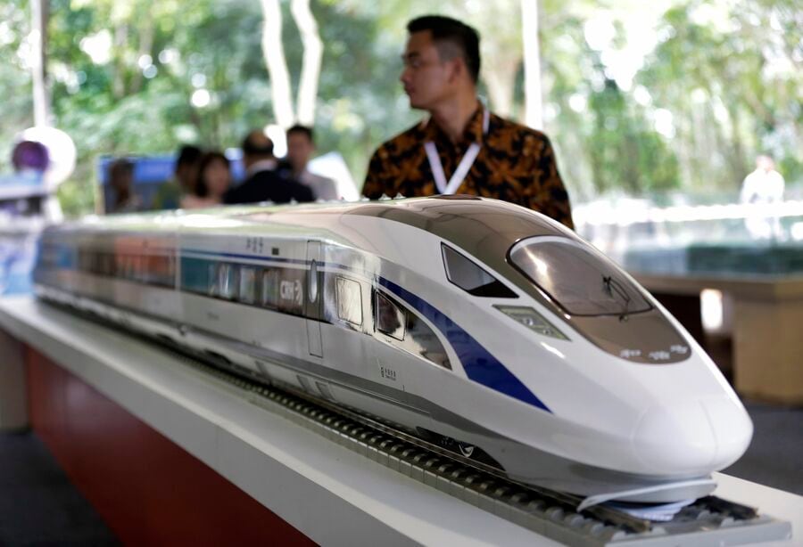中国にさらわれたインドネシア高速鉄道プロジェクトはいま… 2016年1月、インドネシアの西ジャワ州チカロンウェタンで開かれたジャカルタ-バンドン間を結ぶ高速鉄道工事の起工式で披露された車両模型(写真:AP/アフロ) (画像1/3) 2015年8月、習近平主席の特使としてジャカルタを訪問した中国の徐紹史・国家発展改革員会主任らと会談するジョコ・ウィドド大統領。中国側はこの時、高速鉄道事業化に向けた報告書を提出した(写真:新華社/アフロ) (画像2/3) 2020年4月、ジャカルタ-バンドン間で3番目となるトンネルの貫通に喜ぶ作業員たち(写真:新華社/アフロ) (画像3/3) 中国にさらわれたインドネシア高速鉄道プロジェクトはいま… この写真の記事を読む