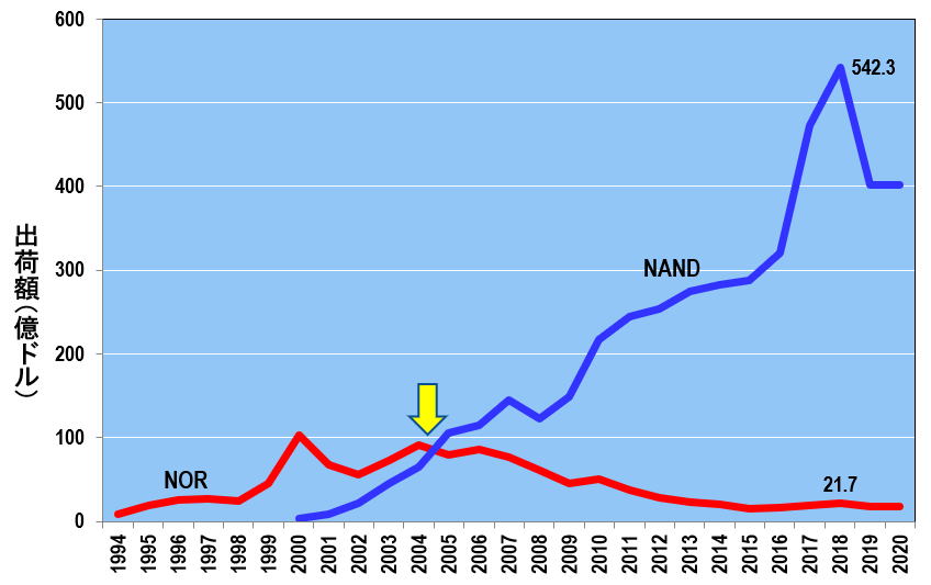 図3 NOR型フラッシュメモリの出荷額と出荷個数