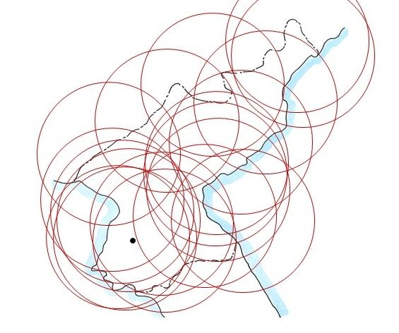 S-300による濃密な対空ミサイル網。それぞれの防空網内では、撃破効率が高い。米韓軍機は、この圏内の飛行が難しいことが分かる(出典:筆者作成)