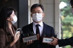 韓国では現在、李在明氏の関係が噂される都市開発疑惑をめぐる報道が過熱している。写真は10月11日、取り調べのためソウル中央地検に出頭した「火天大有」の大株主である金萬培(キム・マンベ)氏と詰め寄る報道陣(写真:YONHAP NEWS/アフロ)