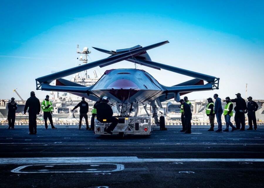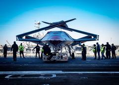 米空母ジョージ・W・ブッシュに搭載されるボーイングの無人機「MQ-25」(11月30日、米海軍のサイトより)