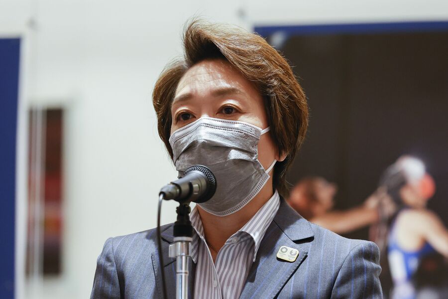 12月21日、東京・新宿の日本オリンピックミュージアムで行われたイベントで挨拶する橋本聖子東京五輪組織委会長(写真:ZUMA Press/アフロ)