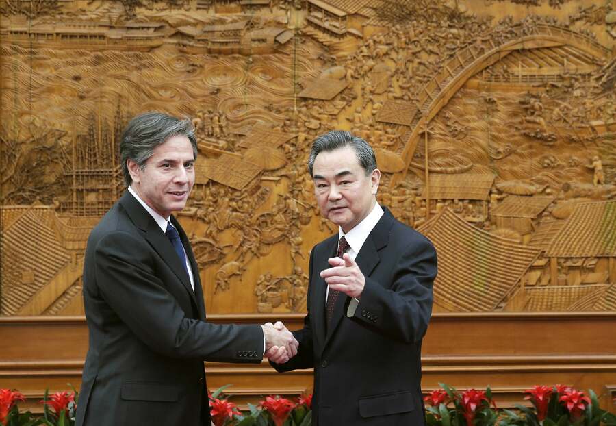 2015年2月、当時国務副長官だったブリンケン氏は訪中し王毅外相と会談している(写真:代表撮影/ロイター/アフロ)