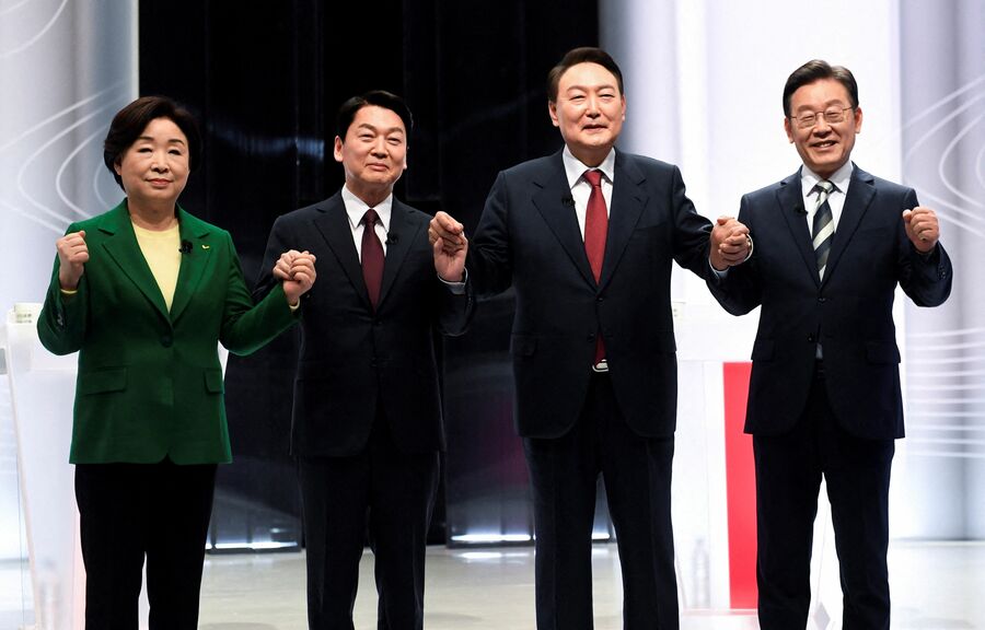 「大統領選で不利だから」と自分の都合で「反日感情」扇動する文在寅と李在明 2022年3月1日、ソウルで開かれた三・一運動記念式典で演説する文在寅大統領(写真:代表撮影/ロイター/アフロ) (画像1/3) 韓国のネットにあふれた尹錫悦氏を「親日派」として揶揄する選挙ポスター風画像。頭を禿げ頭に、鼻の下にはひげをつけ、「総理大臣 尹東錫悦」と書かれている。 (画像2/3) 2月25日、テレビ討論で顔をそろえた大統領選の候補者たち。左から正義党の沈相奵、国民の党の安哲秀、国民の力党の尹錫悦、共に民主党の李在明の各氏(写真:代表撮影/ロイター/アフロ) (画像3/3) 「大統領選で不利だから」と自分の都合で「反日感情」扇動する文在寅と李在明 この写真の記事を読む